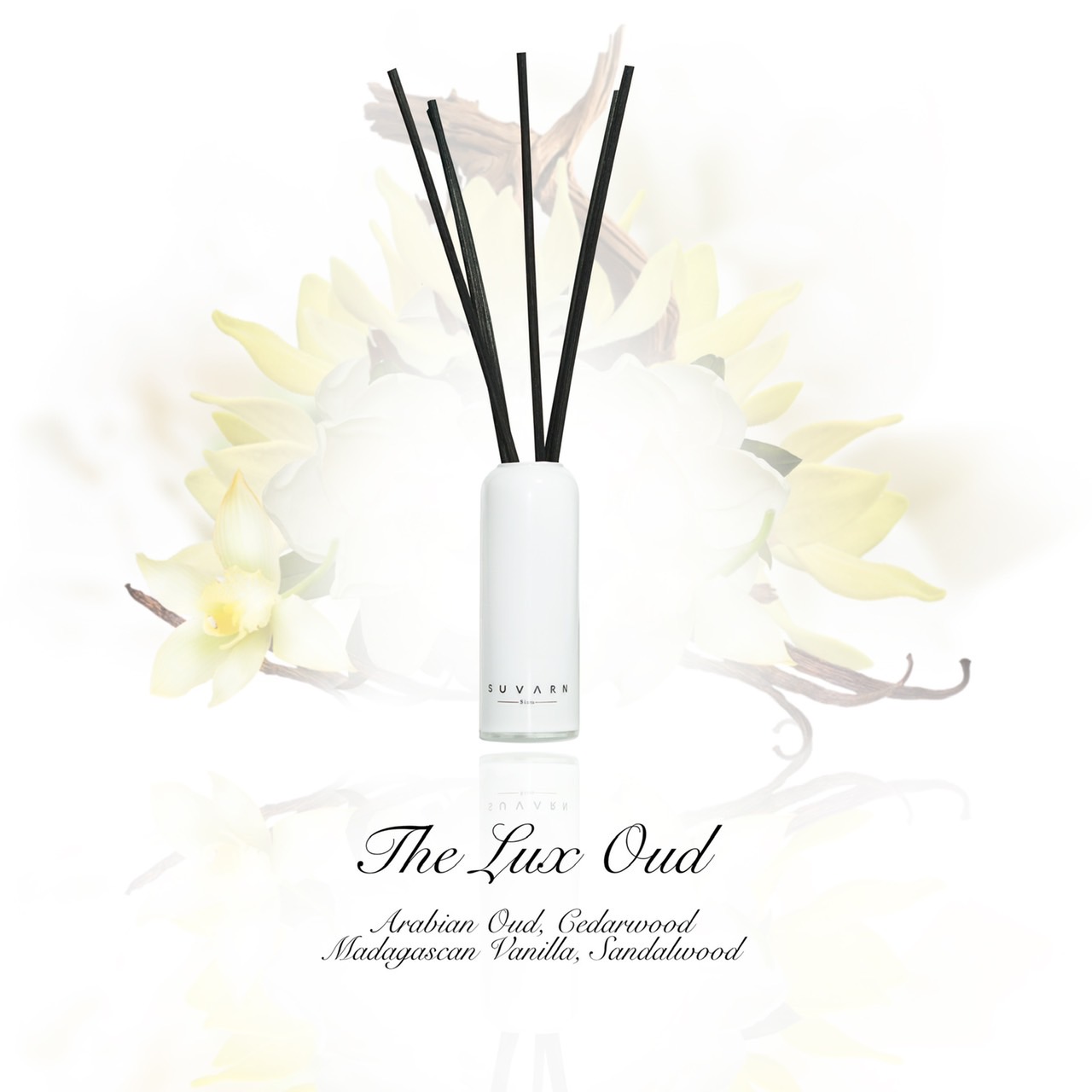 Aromatic Reed Diffuser ชุดก้านไม้กระจายกลิ่นหอมในเซ็ตที่มี ประกอบด้วย- Handmade white crystal glass vase : แจกันแก้วสีขาวมุกผลิตโดยช่างเป่าแก้วชำนาญงานกว่า 30 ปี ทำให้เกิดเป็นแจกันที่สวยงาม มีความเป็นเอกลักษณ์ในแบบ สุวรรณ-The diffuser refill bottles : ขวดบรรจุน้ำหอมขนาด 150 ML- The Reed ( rattans ) stick : ก้านไม้หวายธรรมชาติ สีดำสนิท อบแห้ง ผ่านการฆ่าเขื้อทุกขั้นตอนวิธีใช้-เปิดขวดน้ำหอม Refill แล้วเทน้ำหอมใส่แจกันแก้ว ในปริมาณ 1/4 ถึง ครึ่งแก้ว- นำก้านไม้หวาย มาเสียบลงในแจกัน ตั้งไว้ในห้องนอน หรือห้องที่ต้องการ สร้างบรรยากาศที่สดชื่น ผ่อนคลาย-หากต้องการให้กลิ่นฟุ้ง กระจายมากขึ้น แนะนำให้กลับก้านไม้ ทุก 3-4 วันขนาด 150 ML / ระยะเวลาการใช้ ประมาณ 2.5 เดือนให้เลือก 10 กลิ่นตามไลฟสไตล์